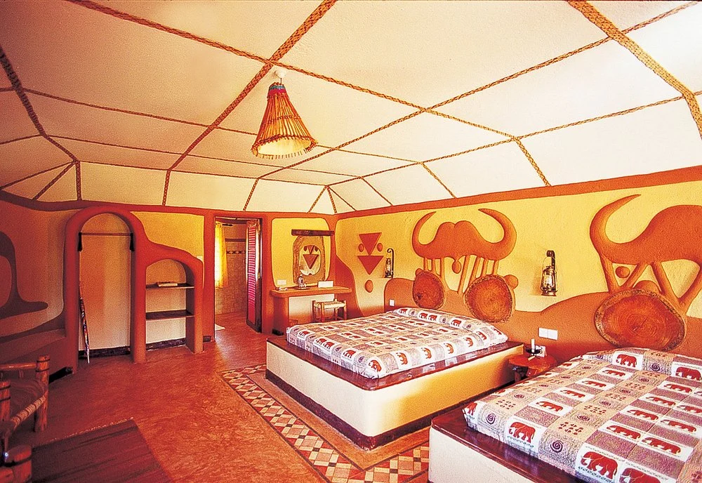 Includes 1 honeymoon suite, 6 inter-connecting rooms & 2 wheelchair accessible rooms.Rustic, well spaced cottages meander through the vast expanse of our mature gardens and house our eighty three guest rooms. These are all brightly decorated with Maasai themed wall murals, and each room has been purpose built to contain either one or two queen sized beds as well as a veranda.