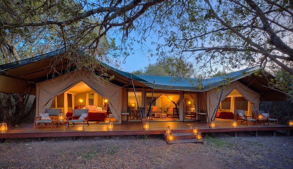 - Six luxury tents with en suite bathrooms and verandas