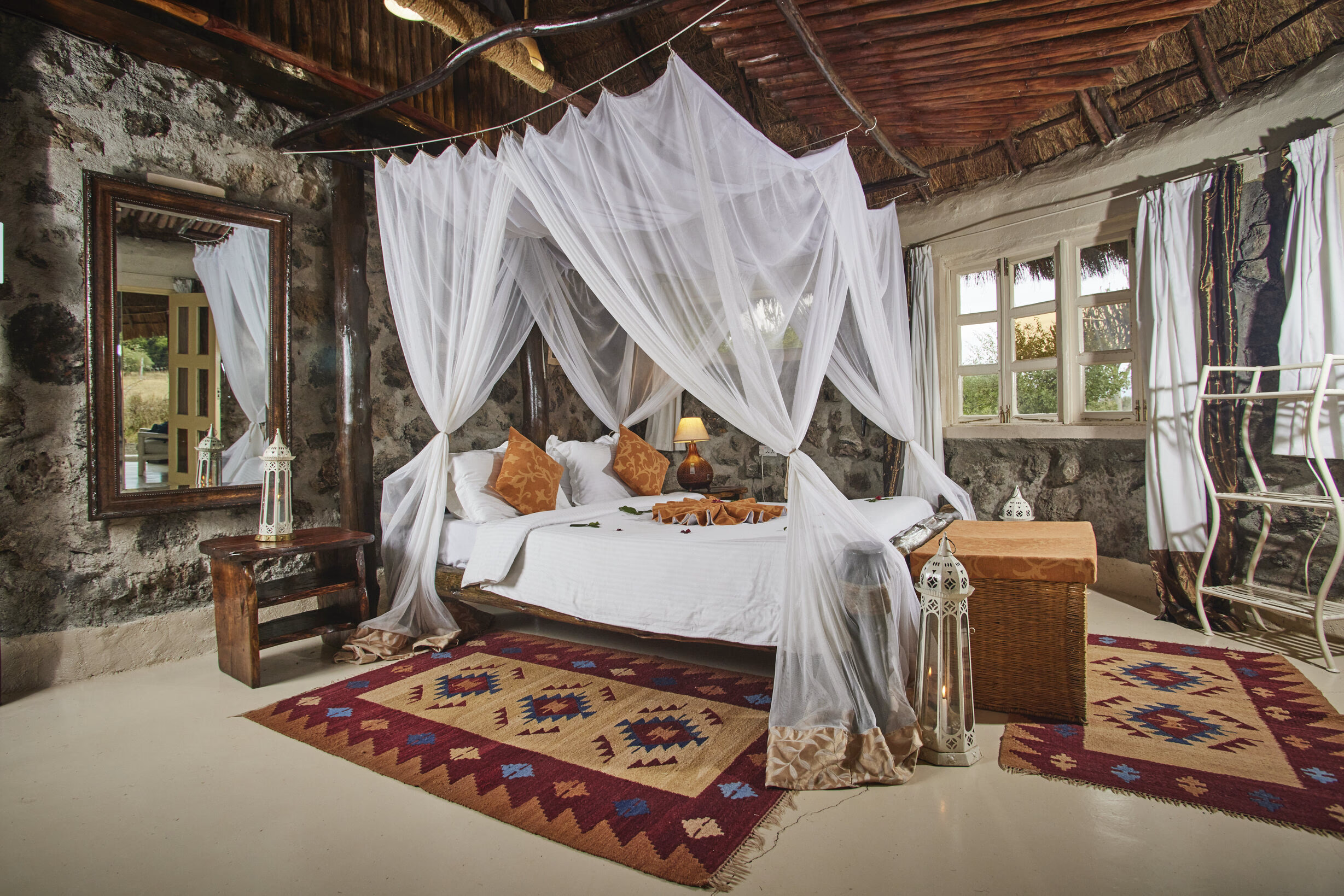 Mbweha Camp has 10 lava-stone cottages, adorned with thatched roofs and surrounded by indigenous flora, provide a tranquil escape just hours from Nairobi. Embrace the freedom of activities like walking safaris, mountain biking, and night game drives, all set against the backdrop of the vast Soysambu Conservancy—a World Heritage and Ramsar Site rich in history and wildlife.